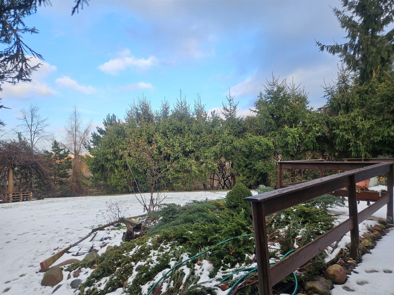 Działka: 1360 m² – ogrodzona, zagospodarowana, liczne nasadzenia