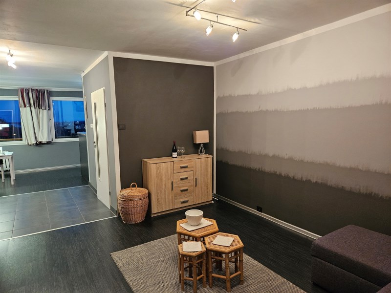 Pierwotnie 3 pokoje, po połączeniu pokoju z kuchnią pozostały 2 pokoje i aneks kuchenny z jadalnią.