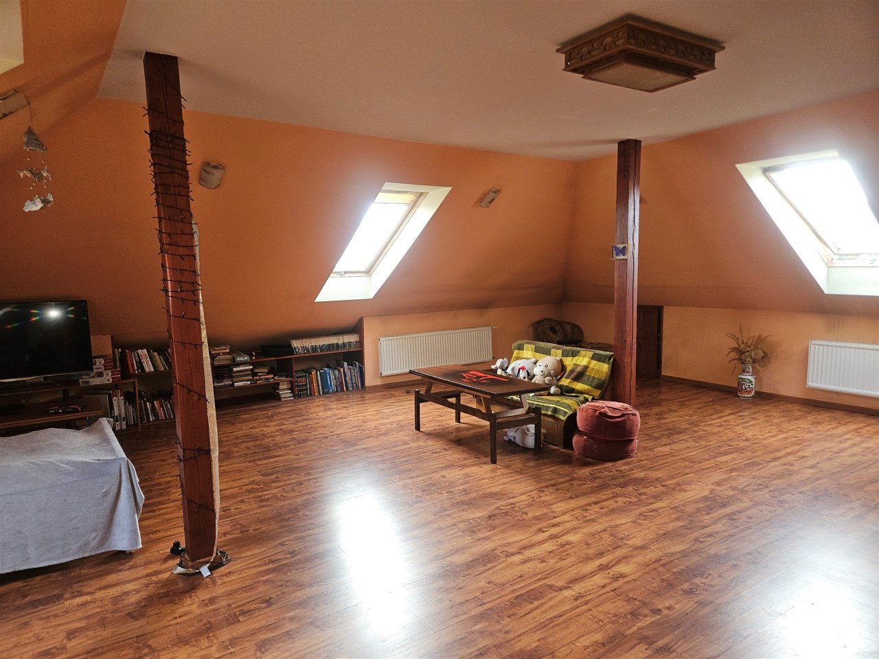 Przestronny salon (ok. 50 m²) połączony z aneksem kuchennym