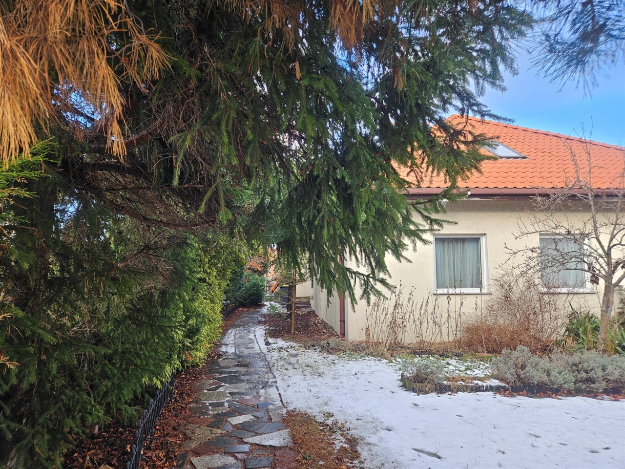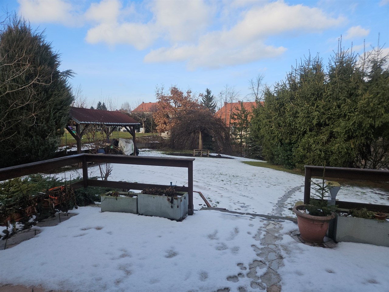 Działka: 1360 m² – ogrodzona, zagospodarowana, liczne nasadzenia