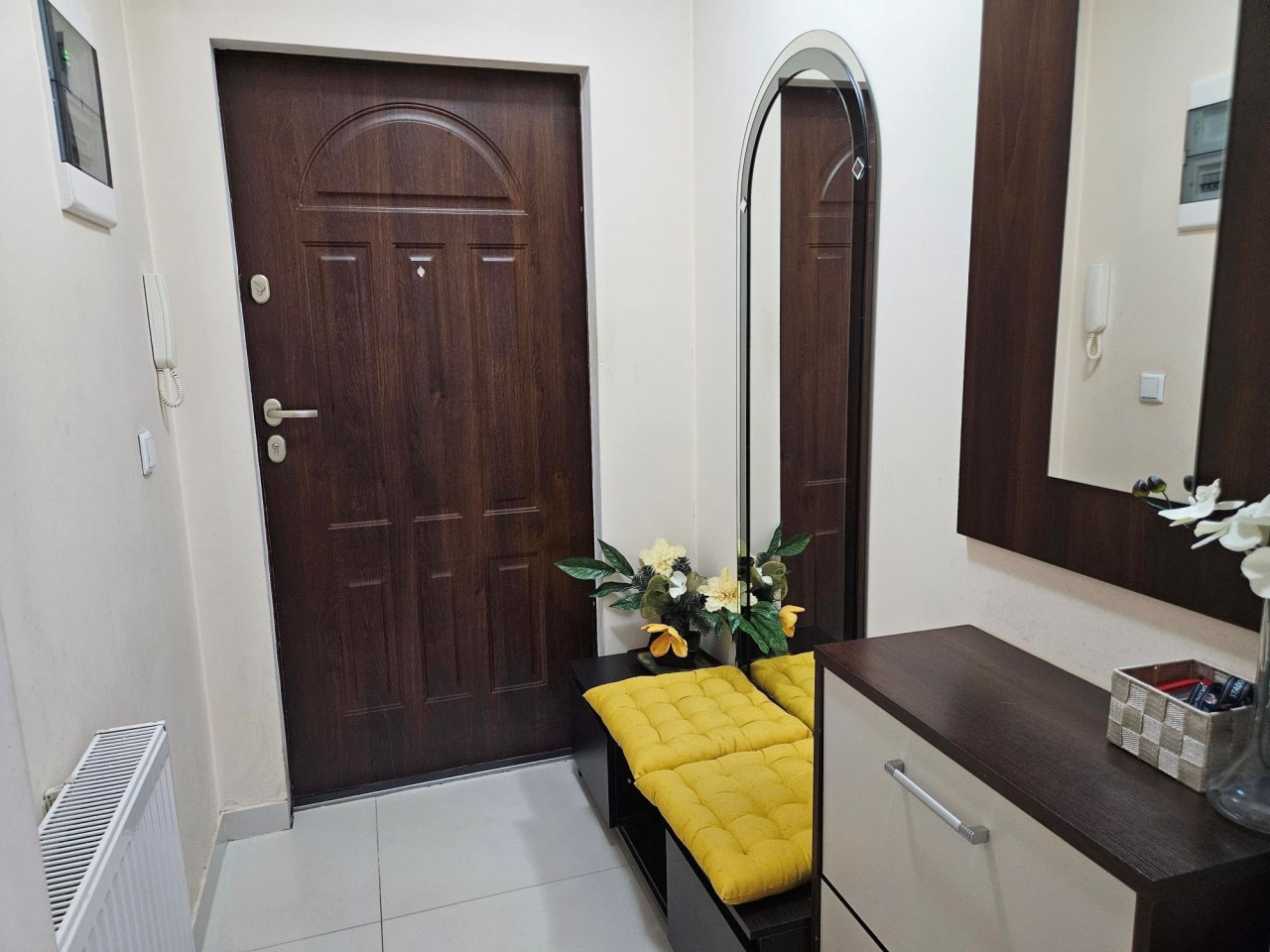 Układ: salon z aneksem kuchennym, 2 sypialnie, garderoba, łazienka, korytarz