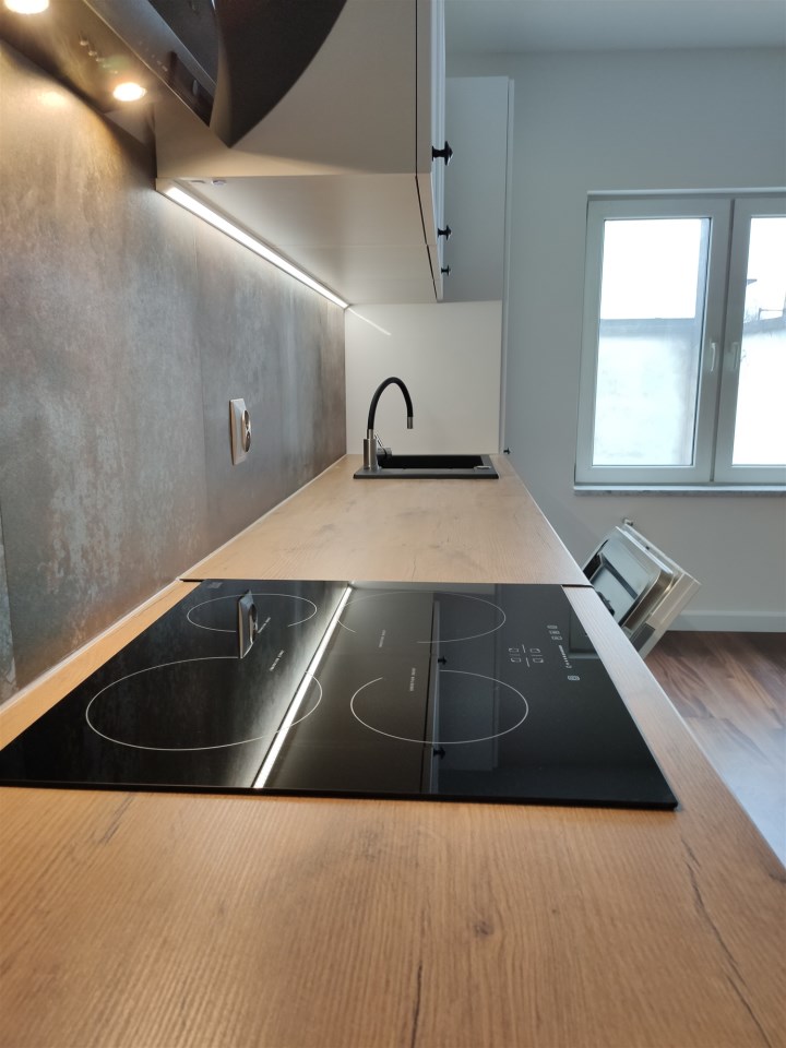 Kuchnia w zabudowie z nowym sprzętem AGD.